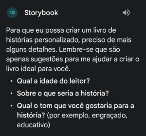 É importante ressaltar que o “storybook” não é um site ou um aplicativo com um URL específico. É um processo de criação. O pesquisador ou a equipe de ética colabora com a IA, fornecendo as informações do estudo, a faixa etária da criança e o tom desejado. A IA, então, gera o conteúdo da história, que servirá de base para o design final do TALE, com ilustrações e um formato de livro.