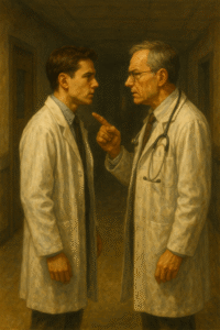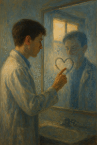 Depois de enfrentar os três inimigos, o estudante descobre o quarto: ele mesmo. A pressa, a vaidade, o medo de errar, o cansaço — todos conspiram contra o propósito de cuidar. Nenhum curativo esconde tanto quanto a própria insegurança. O médico em formação precisa aprender a tratar não só o outro, mas também suas próprias sombras.