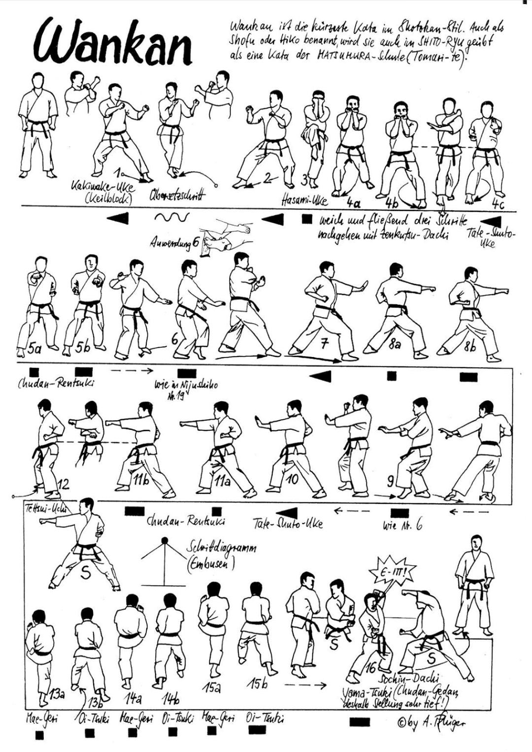 O som ecoa pelas montanhas, atravessando o tempo. Quando o eco se desfaz, o corpo do Mestre Liu Liu já repousa no chão serenamente. Com ele, metade do kata desaparece, restando ao discípulo apenas os 16 kyodos iniciais. O discípulo, em reverência, preservou apenas os últimos movimentos de seu mestre, criando o Wankan, o kata incompleto.