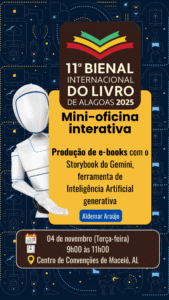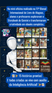 A Mini-Oficina Interativa de Produção de e-books apresentou aos participantes o Storybook do Gemini, uma ferramenta gratuita de Inteligência Artificial generativa aplicada à educação. Durante cerca de quatro horas, alunos e professores aprenderam a construir histórias originais, criar personagens, gerar ilustrações e exportar seus próprios livros digitais. A metodologia envolveu demonstração ao vivo, acompanhamento individual e socialização das produções finais. A atividade promoveu criatividade, leitura, escrita e cultura digital, permitindo que cada participante se tornasse autor da própria obra. O formato é acessível, replicável em escolas e ideal para projetos pedagógicos que valorizam protagonismo estudantil e aprendizagem ativa.