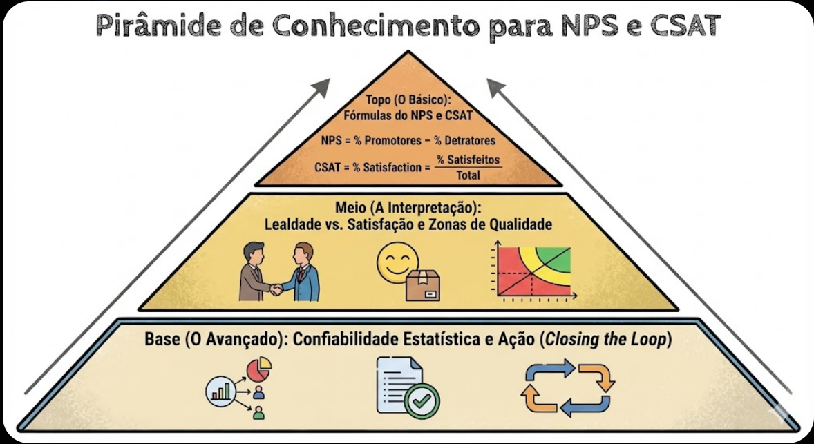- Topo (O Básico): Saber a fórmula do NPS e CSAT. (Você já sabe).