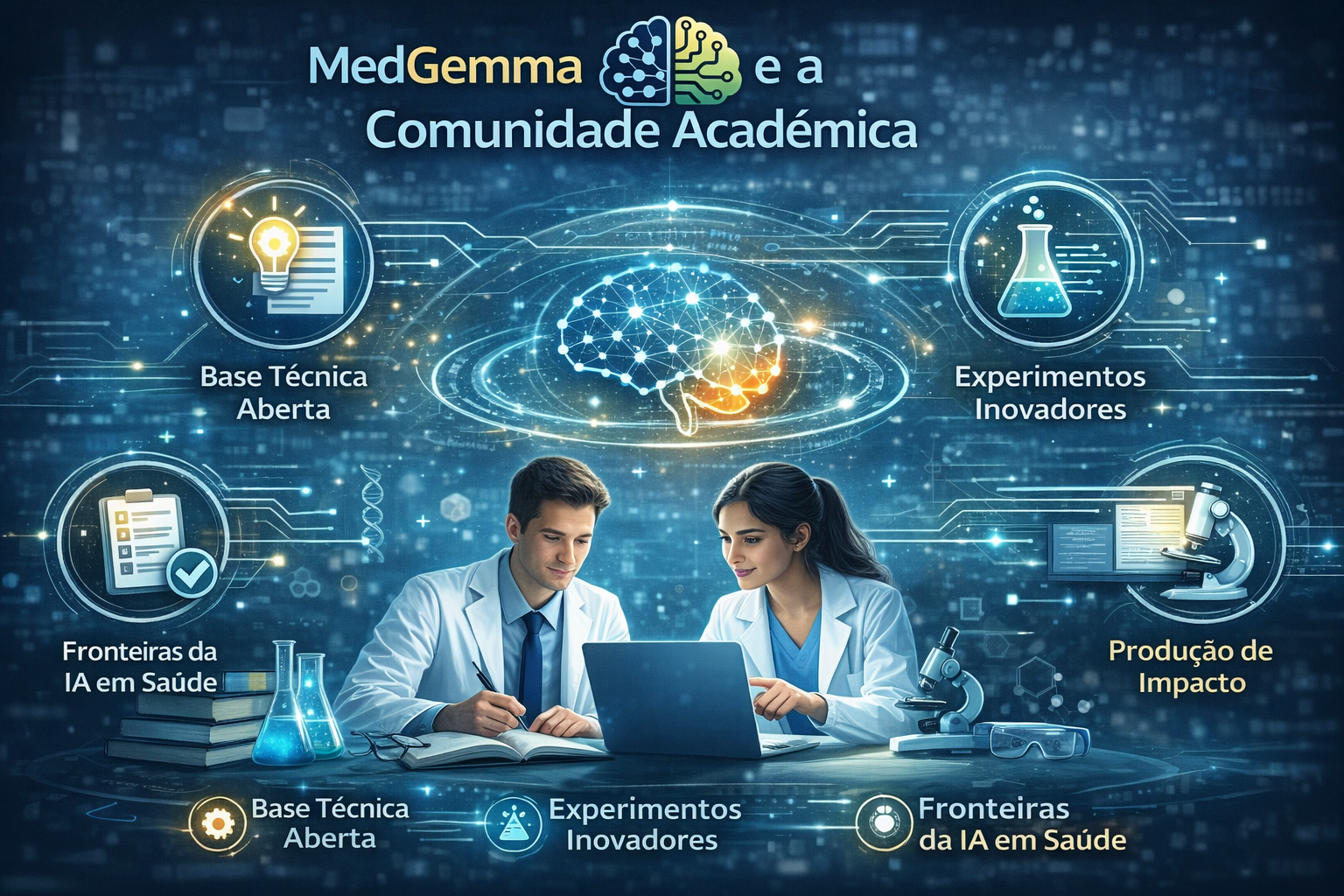 Para a comunidade acadêmica, o MedGemma oferece uma base técnica aberta que pode catalisar pesquisas inovadoras e experimentações metodológicas no campo da IA médica, desde que integrada a protocolos de validação, governança e ética. A disponibilidade de variantes multimodais e ferramentas relacionadas fornece um ponto de partida acessível para explorar as fronteiras da IA em saúde, com oportunidade para produzir trabalhos de impacto em diagnósticos assistidos por IA, interpretação de exames e suporte a processos educativos. (Google for Developers)