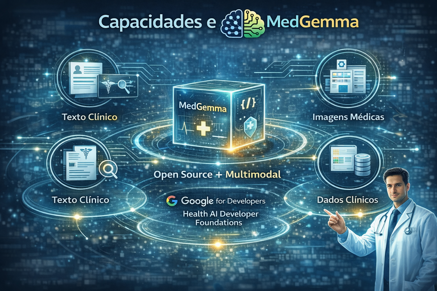 Ao longo deste texto, foram exploradas as características técnicas do MedGemma, incluindo suas variantes multimodais e de texto, que permitem aplicações em tarefas que variam de interpretação de imagens médicas a geração de relatórios clínicos e compreensão de linguagem médica. Essas capacidades tornam o modelo uma base técnica valiosa para pesquisadores e desenvolvedores que desejam criar soluções inovadoras em saúde sem a necessidade de treinar modelos a partir do zero. (Google for Developers)