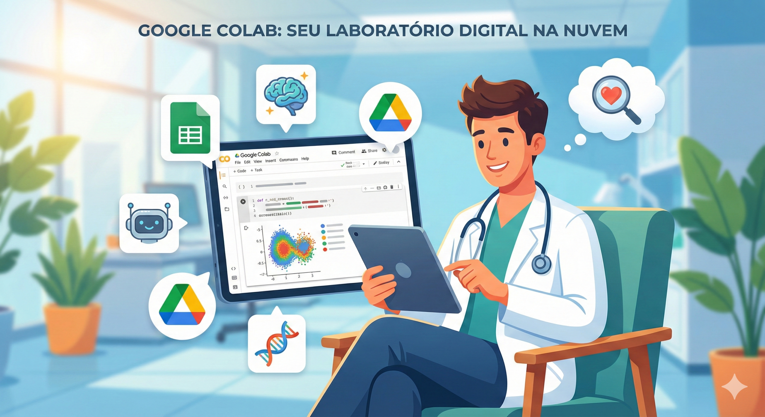 O Google Colab é um ambiente de desenvolvimento em nuvem que democratiza o acesso à tecnologia na saúde, funcionando como um laboratório digital pessoal. Para o estudante de medicina e residente, ele serve como uma ferramenta vital para analisar grandes volumes de dados clínicos, visualizar estatísticas epidemiológicas e testar modelos preditivos sem a necessidade de instalar softwares pesados ou complexos. Sua importância estratégica reside na integração fluida entre a prática clínica diária e a Medicina Baseada em Evidências, permitindo que futuros médicos não apenas consumam, mas testem hipóteses e colaborem em pesquisas multicêntricas em tempo real através do Google Drive. Longe de ser obsoleto na era da IA Generativa, o Colab se fortalece como o “motor” onde essas inteligências são validadas e integradas a dados reais, sendo a ponte entre a teoria médica e a aplicação tecnológica.