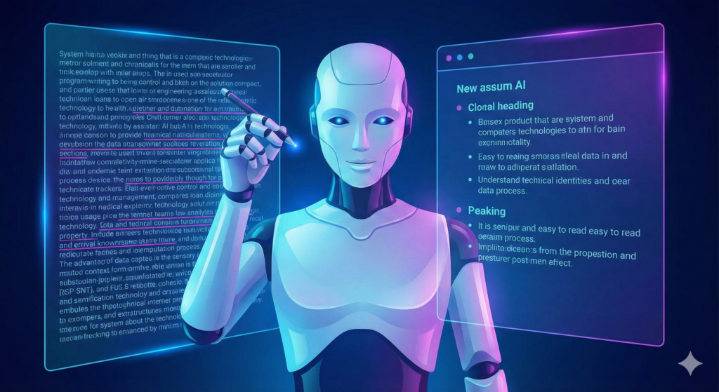 A inteligência artificial atua como um poderoso assistente na análise e simplificação de textos complexos, tornando a informação mais acessível.