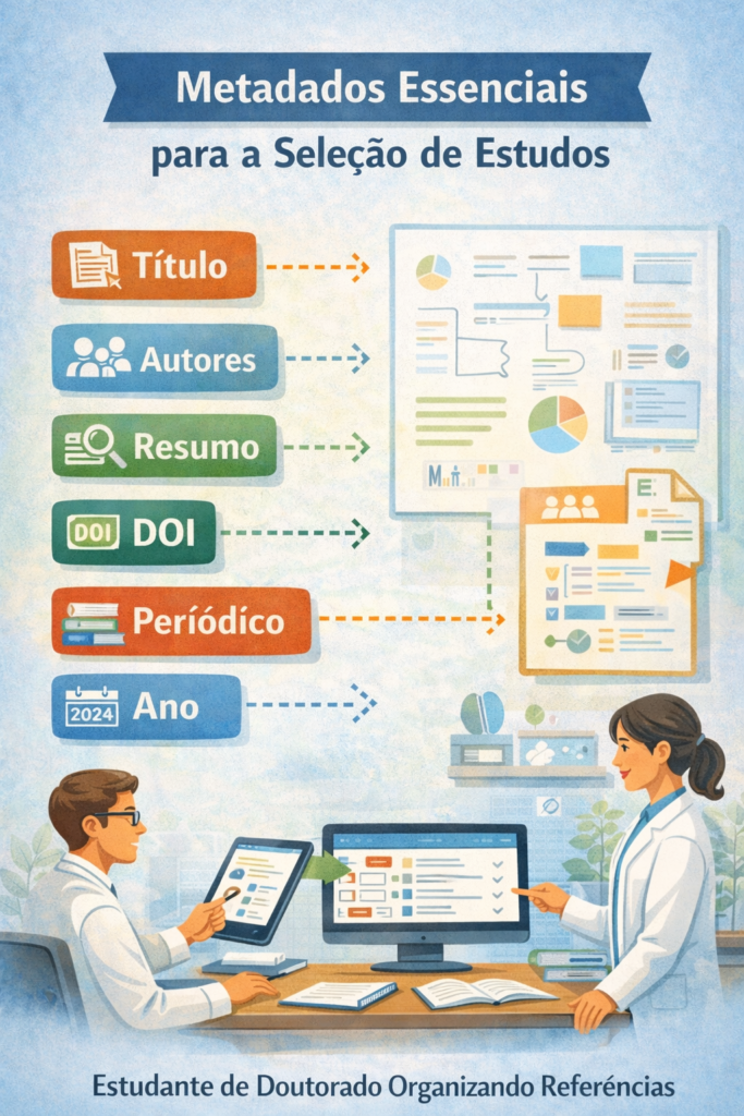Entre todos, resumo e DOI merecem atenção especial. O resumo amplia a qualidade da triagem por permitir uma avaliação preliminar mais confiável da elegibilidade. O DOI, por sua vez, melhora a precisão do registro e pode apoiar deduplicação e conferência posterior. Quando esses campos são preservados desde o início, a seleção dos estudos se torna mais fluida, rastreável e defensável do ponto de vista metodológico. A recomendação do Rayyan para incluir o resumo na exportação é um indicativo concreto dessa prioridade.