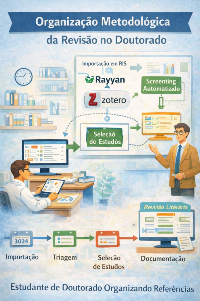 No fluxo da pesquisa acadêmica contemporânea, especialmente em dissertações, teses e revisões de literatura, importar referências para uma ferramenta de triagem não é um detalhe operacional: é uma etapa metodológica. A qualidade da base importada afeta a identificação de duplicatas, a leitura de títulos e resumos, a aplicação dos critérios de elegibilidade e até a reprodutibilidade do estudo.