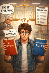 Se o orientador representa a autoridade estratégica, as normas institucionais representam o nível estrutural do sistema. Elas incluem regulamentos da pós-graduação, exigências éticas, diretrizes formais, prazos e critérios de avaliação.