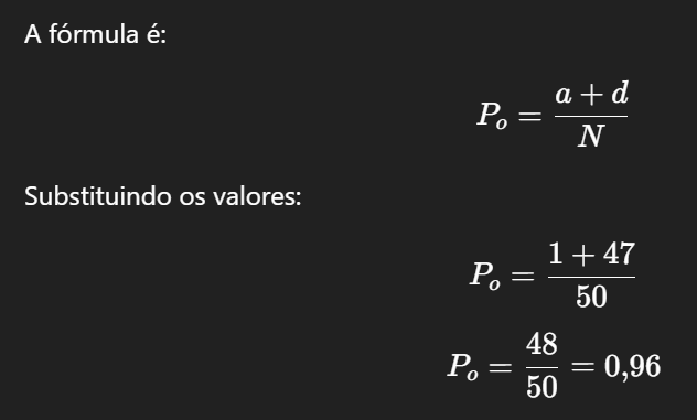 A concordância observada, representada por Po, mostra a proporção de casos em que os dois avaliadores deram a mesma resposta.