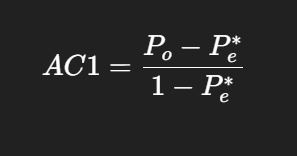 - Reference: GWET, K. L. Handbook of Inter-Rater Reliability: The Definitive Guide to Measuring the Extent of Agreement Among Raters. 5. ed. Gaithersburg: Advanced Analytics, 2021.