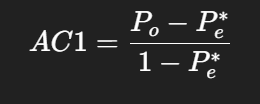 - Reference: WONGPAKARAN, N. et al. A comparison of Cohen’s Kappa and Gwet’s AC1 when calculating inter-rater reliability coefficients, a study conducted with personality disorder samples. BMC Medical Research Methodology, v. 13, p. 61, 2013.